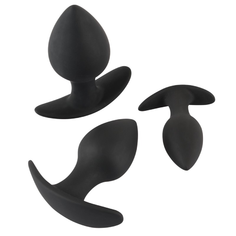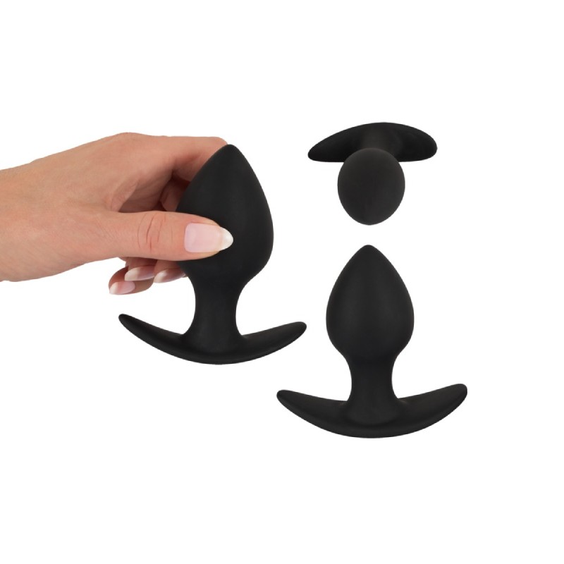 Acest anal training set este format din 3 butt plug-uri negre din silicon de mărimi diferite, respectiv 8.5 cm, 8,9 cm, 10 cm lungime. Diferitele dimensiuni sunt perfecte pentru antrenamentul anal gradual.