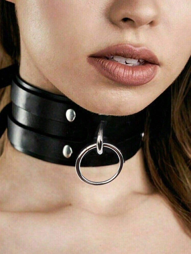 Choker cu Inel Metalic – Design Îndrăzneț, din Piele Ecologică