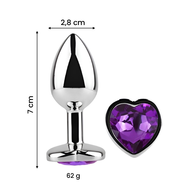 Heart Anal Plug Metalic cu Diamant Mov Lavandă, S