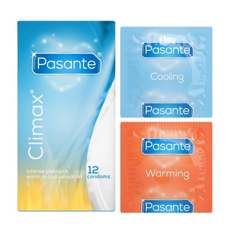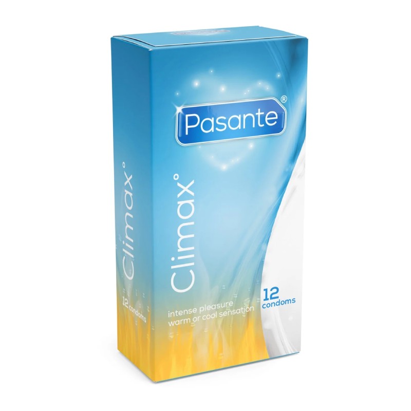 Experimentează un nou nivel de plăcere cu Pasante Climax, un set special de 12 prezervative texturate ce oferă senzații termice contrastante – 6 cu efect de încălzire și 6 cu efect de răcire. Concepute pentru a stimula intens fiecare moment intim, aceste prezervative au o formă paralelă, sunt transparente și prevăzute cu texturi nervurate pentru o stimulare suplimentară.
